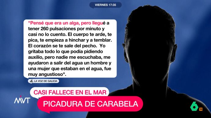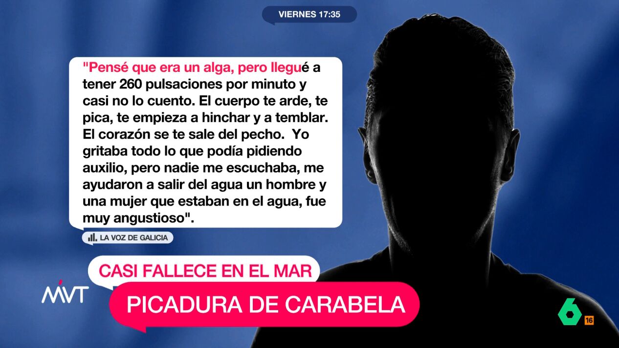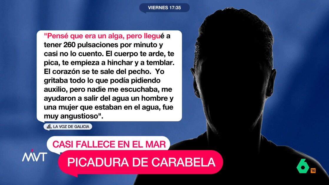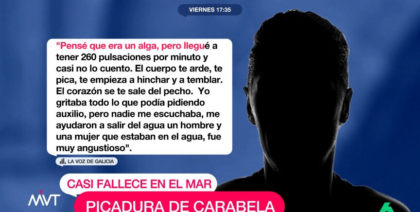 El hombre nadaba mar adentro cuando se vio sorprendido por un espécimen de este animal. La carabela le agarró con sus tentáculos lo que le ha dejado marcas en brazos y tórax.