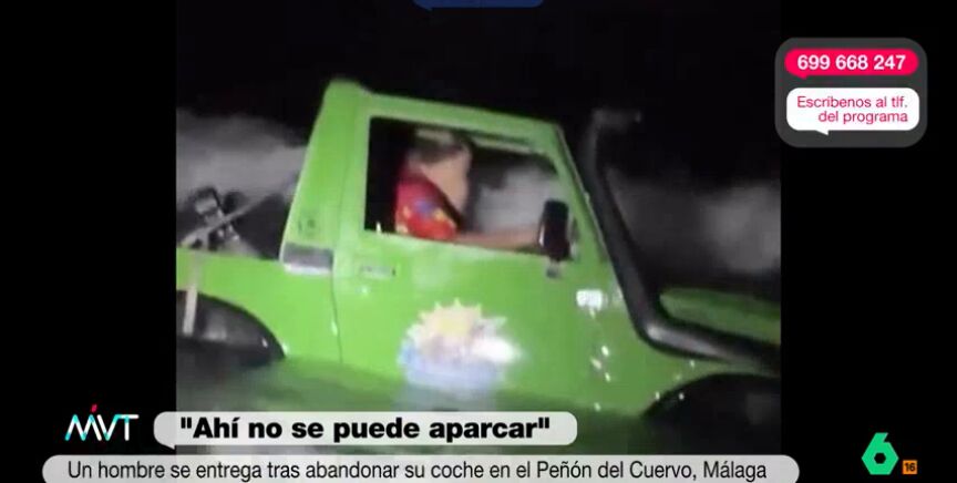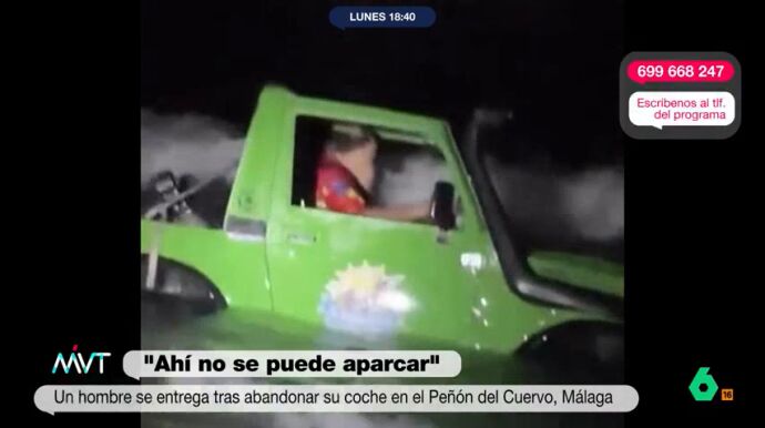 Un hombre quedó encallado con su coche, un todoterreno verde, en la playa de El Peñón del Cuervo (Málaga) durante la noche del sábado. El vehículo se encontraba dentro del agua, a escasos metros de la arena y con las olas rompiendo sobre él. Ante la inacción del hombre, unos jóvenes que se encontraban en la zona realizando botellón comenzaron a gritarle: "Ahí no se puede aparcar", "Tiene que salir hombre", y comienzan a presuponer: "Está borracho yo creo".