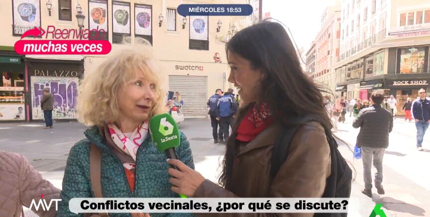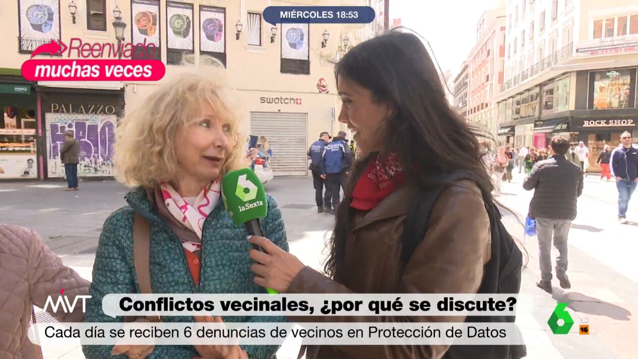 "Mi vecina es muy buena conmigo, me llama todos los días por teléfono y el otro día hizo pimientos del piquillo y me los llevó", afirma una mujer a la que le cambia la cara cuando se le pregunta por sus otros vecinos. "Me he pensado si echarle pis en la alfombra", comenta por su parte otra chica, mientras uno de los entrevistados asegura en el vídeo sobre estas líneas que ha visto a dos de sus vecinos pegándose.