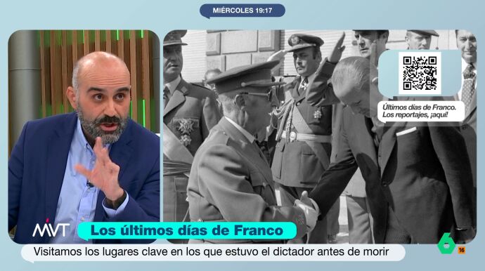 El periodista de laSexta Clave, José María Rivero, está recorriendo los lugares clave de los últimos días del dictador, Francisco Franco, aquellos donde, como él dice, pasó algo. Uno de ellos fue el Instituto de Cultura Hispánica, hoy llamado la Agencia de Cooperación para el Desarrollo, situado en pleno distrito de Moncla, en Madrid.