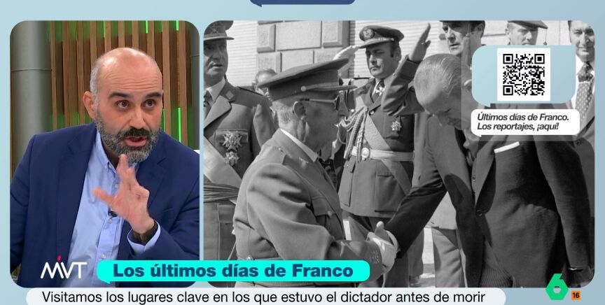 Ese día fue clave para el fin de Franco, porque ese 12 de octubre, cuando llegó a casa, comenzó a sentirse "indispuesto": "Lo que cuentan las crónicas de la época, es que él en un momento determinado intenta levantarse y no puede y es ahí donde se decide que no van a haber vídeos, de ese día, en el NODO, sino que solo habría fotos", expone.