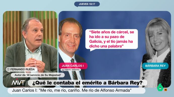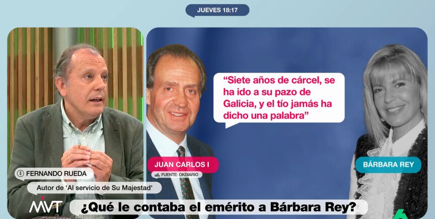 Por su parte, el escritor Fernando Rueda cuenta una "anécdota" de cuando comenzó la relación del emérito con Corinna Larsen, en 2004. "El servicio secreto investigó a Corinna y dijeron que era 'una imagen negativa y que puede hundirle'. Es por eso que Alberto Sáez, el director del servicio secreto, decidió hablar con los amigos del rey para que se lo dijeran".