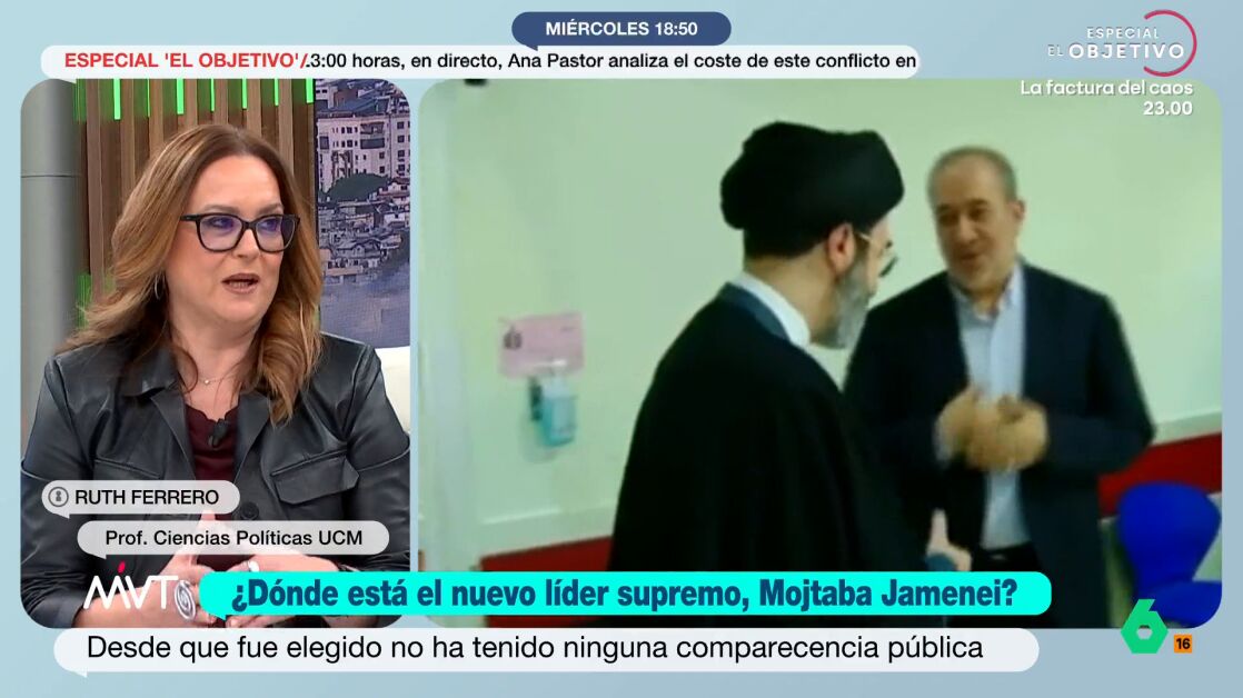 Ruth Ferrero, profesora de Ciencias Políticas en la Universidad Complutense, apunta que hay varias hipótesis sobre el paradero desconocido del hijo del ayatolá Jamenei, desde que esté herido a motivos de seguridad.