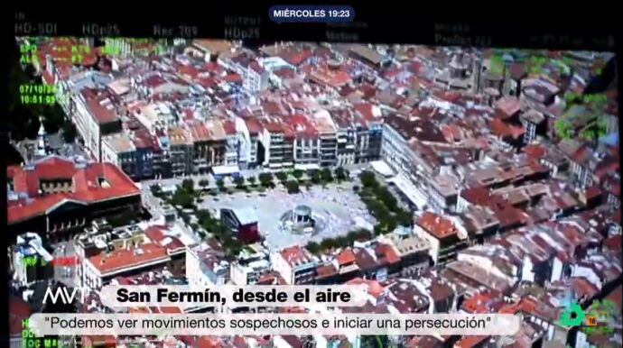María Lamela, periodista de laSexta, ha acompañado a la Unidad de Medios Aéreos de la Policía Nacional en el 'Condor', el nombre del helicóptero que está utilizando la autoridad durante las fiestas de San Fermín, y han grabado cómo trabajan las agentes desde el cielo de Pamplona para mantener todo en orden y que no haya ningún percance.