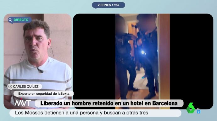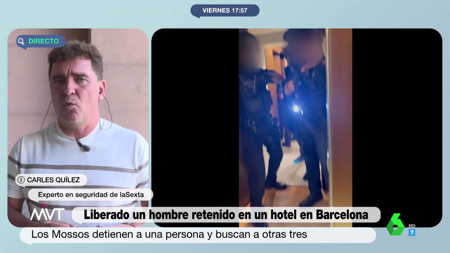 Varias personas secuestraron y torturaron en un hotel de Barcelona a un hombre de 32 años que fue liberado gracias a la intervención de los Mossos d'Esquadra. Carlos Quílez, experto en seguridad de laSexta, ha analizado en Más Vale Tarde las claves de lo ocurrido.