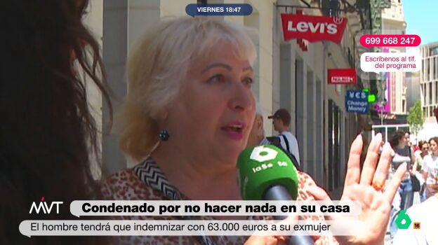 Lamela plantea a una mujer si esa sentencia puede animar a otras personas a pedir a su pareja el equilibrar las tareas del hogar. "Entre la gente joven ya no hay ese problema", responde un hombre. Otra chica comenta que quizá la sentencia sí que puede servir para que los hombres "se pongan las pilas" ante la amenaza de que pueden tener que pagar dinero.