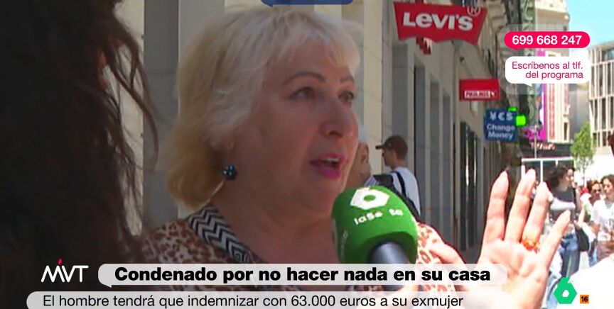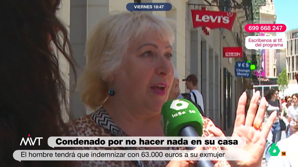 Un hombre deberá indemnizar a su exmujer con 63.000 euros por no hacer nada en casa durante su matrimonio. María Lamela ha salido a la calle para conocer la opinión de los ciudadanos sobre esta sentencia histórica. "No creo que sea una buena sentencia", comparte una señora. "¿Por qué se lo va a pagar porque no colabore? Lo veo mucho dinero", añade.