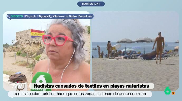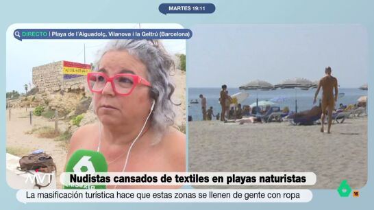 "Yo más que decir que nos sentimos incómodos, sentimos que estamos perdiendo espacio. Incómodos no deberíamos sentirnos, ya que en la mayoría de ocasiones los nudistas y los textiles vivimos en armonía. Ahora, en una playa de tradición nudista donde la mayoría de personas somos nudistas y cuando llega el mes de agosto y está la zona llena de gente con bañador, si que en ocasiones es molesto", ha explicado la nudista.