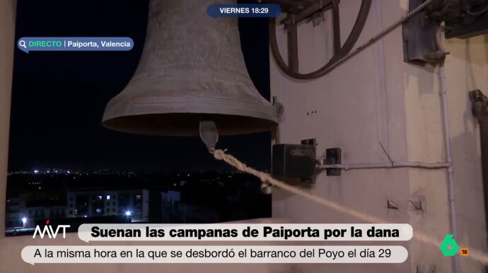Suenan las campanas de Paiporta por la DANA a la misma hora que se desbordó el barranco del Poyo