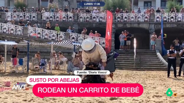 El suceso ha alarmado este domingo a los bañistas de la playa de La Concha (San Sebastián). Las abejas estaban en el interior de la arena y rodearon el carrito de bebé que, afortunadamente, estaba vacío.