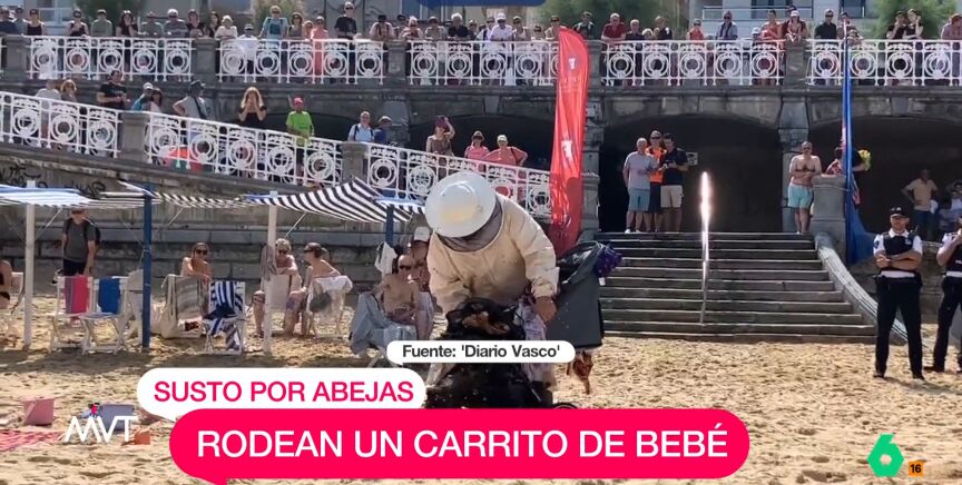 Un enjambre de abejas ha causado alarma este domingo en la playa de La Concha es una playa, situada en la ciudad de San Sebastián (País Vasco). El susto ha sido mayor ya que decenas de insectos rodearon un carrito de bebé, pero, afortunadamente, la silla estaba vacía. La cantidad de abejas era tal que se ha precisado la intervención de un apicultor.