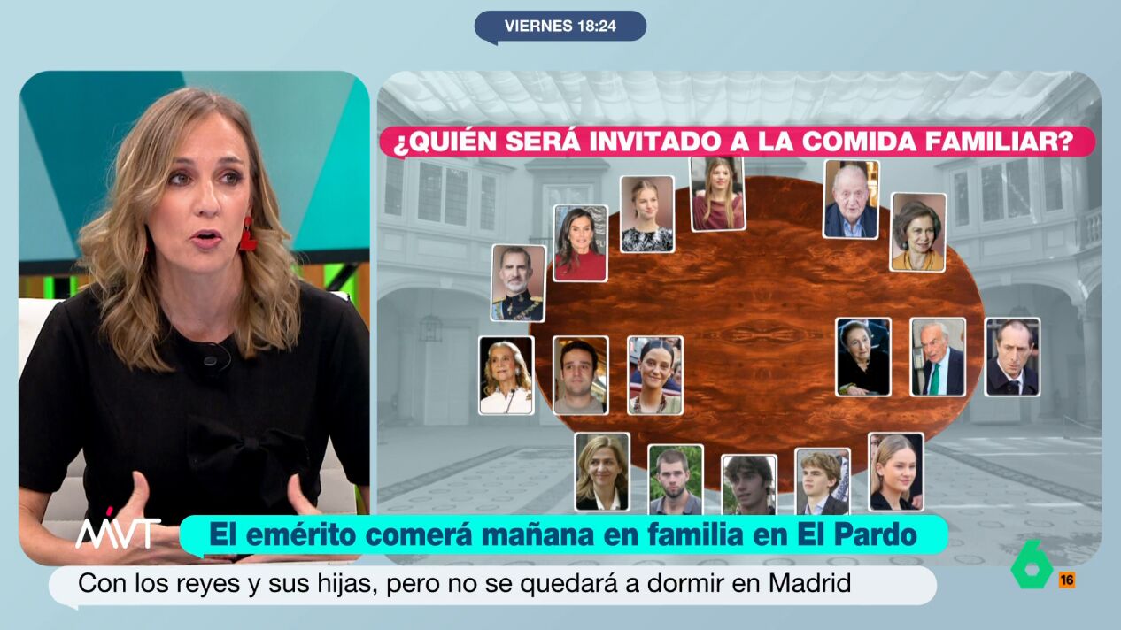 La analista Tania Sánchez ha comentado este viernes en Más Vale Tarde que la comida que va a tener la familia real este sábado en el Pardo para conmemorar la vuelta de la monarquía a España, va a ser "más tensa que cualquiera de las que vayamos a tener las próximas Navidades, que seguro que todos tenemos alguna comida tensa".