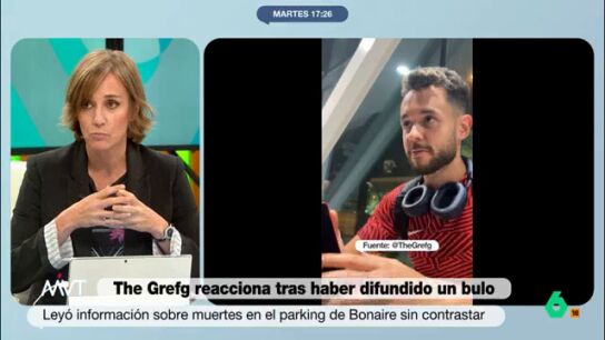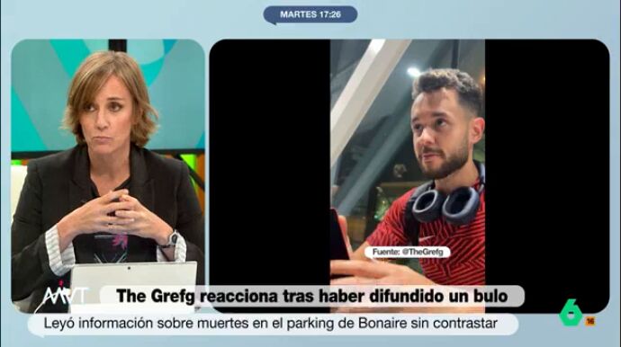Más Vale Tarde expuso hace unos días el bulo que el streamer David Cánovas, conocido como TheGrefg, había compartido en uno de sus directos sobre los fallecidos debido a la DANA en el parking del Centro Comercial Bonaire. El streamer no dudo en responder al programa a través de su perfil de la red social 'X' afirmando que laSexta había maquillado su historia.