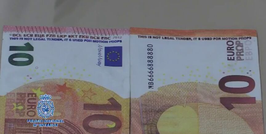 Además, tienen un tacto y un sonido especial: el billete falso no suena, emite un sonido similar al de un papel. El brillo de la marca metálica es otro de los indicadores, pero además hay una peculiaridad en la oleada de billetes falsos que se están distribuyendo por España: en ellos pone en un lateral que son para producciones cinematográficas, y en lugar de la firma de Draghi, encontramos las palabras 'movie money'.