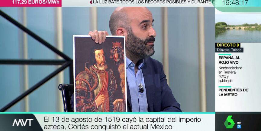 Porque estamos de aniversario: este viernes se cumplen 500 años del momento en que España se convirtió en imperio. "Fue cuando un grupo de españoles liderados por Hernán Cortés derrotó al imperio azteca. Ahí se da el inicio de la derrota del imperio precolombino y es el comienzo, para lo bueno y lo malo, del imperio español y de los indios", ha explicado en Más Vale Tarde el periodista José María Rivero, que ha realizado en el programa un repaso por esa conquista española.