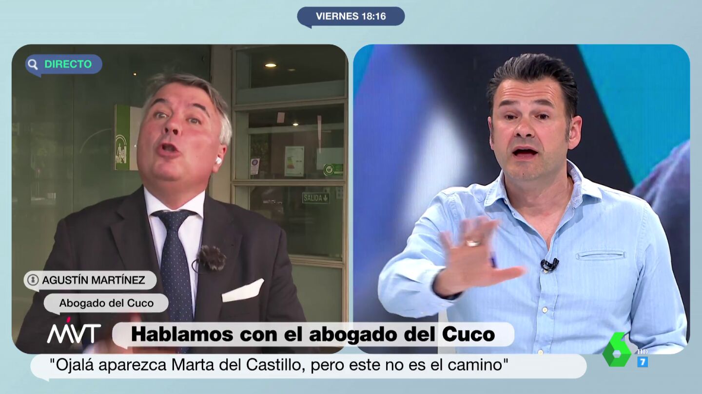 El presentador de Más Vale Tarde, Iñaki López, ha entrevistado a Agustín Martínez, el abogado de Francisco Javier García, El Cuco, acusado de falso testimonio en el juicio sobre la desaparición y muerte de Marta del Castillo. Las preguntas se han desarrollado en un clima de tensión que ha ido en aumento conforme el periodista cuestionaba al letrado sobre los aspectos en los que El Cuco -condenado por encubrimiento- habría mentido.