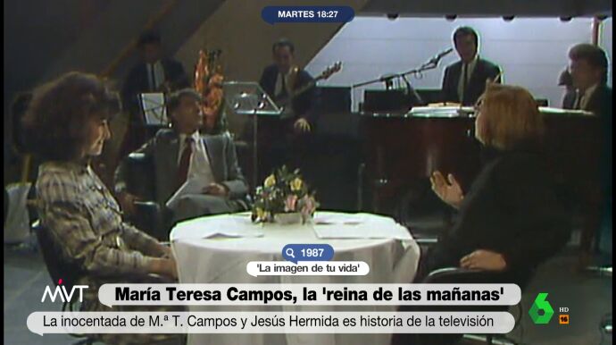 La presentadora trabajaba en 1986 en el programa 'Por la mañana' de Jesús Hermida, ahí fue donde alcanzó la popularidad. Pero el momento más recordado de su trabajo junto a Hermida es la inocentada al público que protagonizaron, donde ambos se enfrentaban en pleno directo echándose en cara la actitud laboral que tenían los dos.