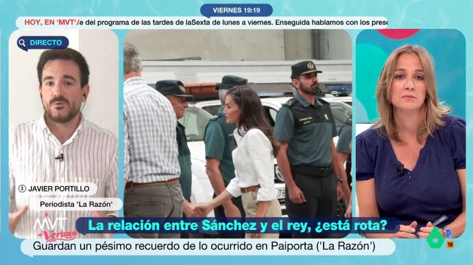 Más Vale Tarde conecta con Javier Portillo, el periodista que firma la noticia, para que Sánchez pueda defender su información. Tania expone al periodista que considera que su pieza no tiene "la suficiente corroborabilidad ni que nadie, ni en Moncloa ni en Zarzuela, va a salir ni a desmentirlas ni a no".