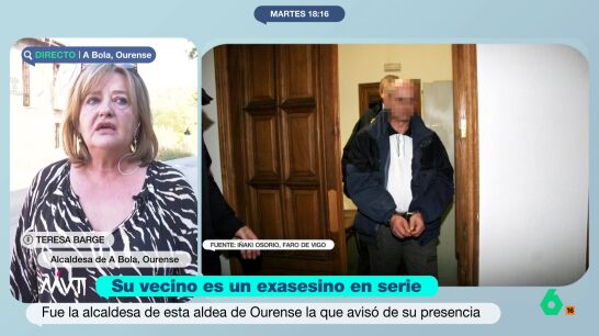 La alcaldesa de A Bola, Teresa Barge, ha explicado en Más Vale Tarde que decidió informar tanto a los vecinos como a la Guardia Civil tras conocer el pasado de Antonio Gil Balguer, el exconvicto que se instaló en la localidad tras salir de prisión.