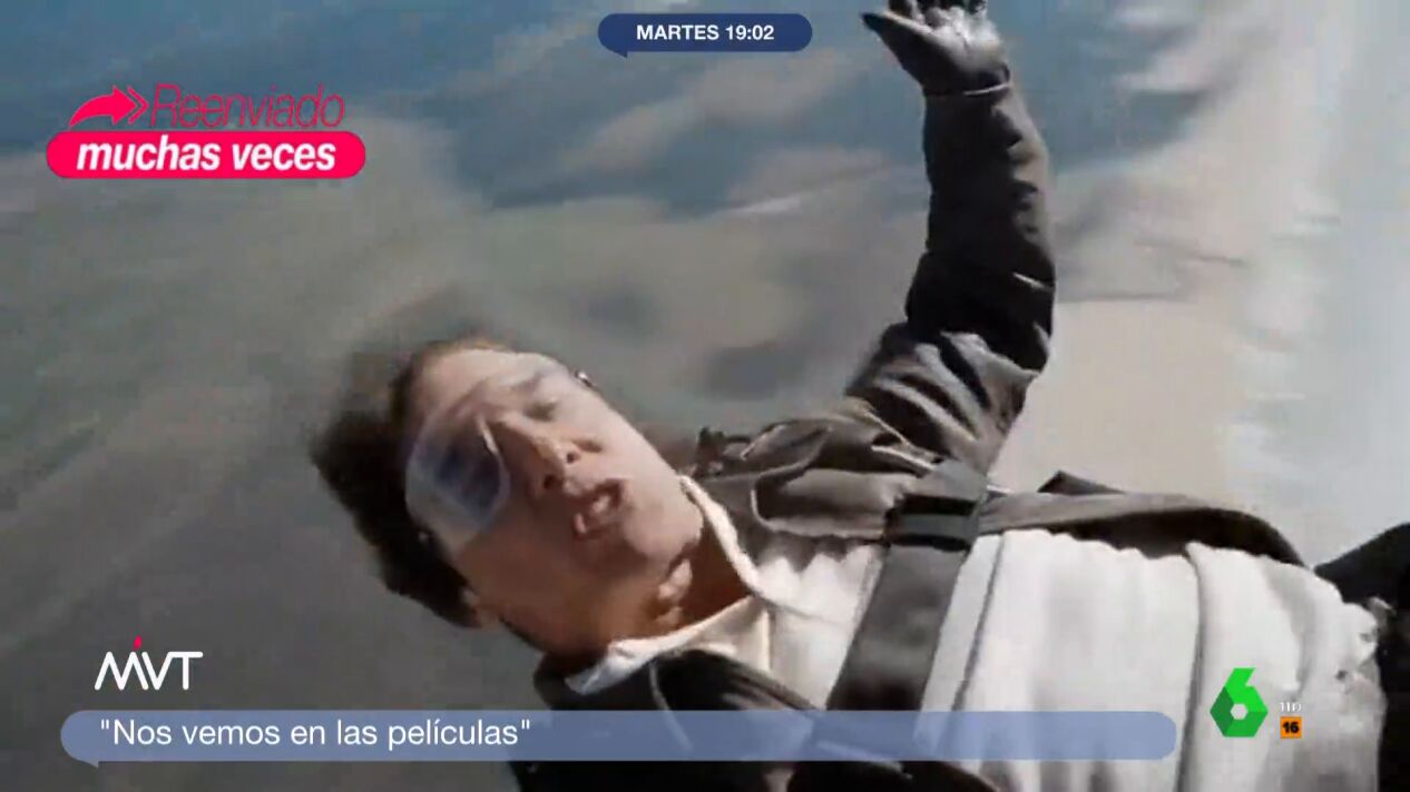 "Para conseguirlo tuvo que hacer 600 saltos en paracaídas y 13.000 en motocross", explica María Lamela, mientras Cristina Pardo asegura que "yo con 60 años me imagino en una hamaca leyendo, no así". Fiel a su idilio a los deportes de riesgo, Cruise ha grabado un curioso vídeo para felicitar las fiestas en el que desea lo mejor a los fans mientras se tira en paracaídas. "Yo desde aquí me gustaría hacer un llamamiento a Cristina e Iñaki para que cierren este año maravilloso de Más Vale Tarde y nos feliciten las navidades haciendo lo mismo", la respuesta de los presentadores, en el vídeo sobre estas líneas.