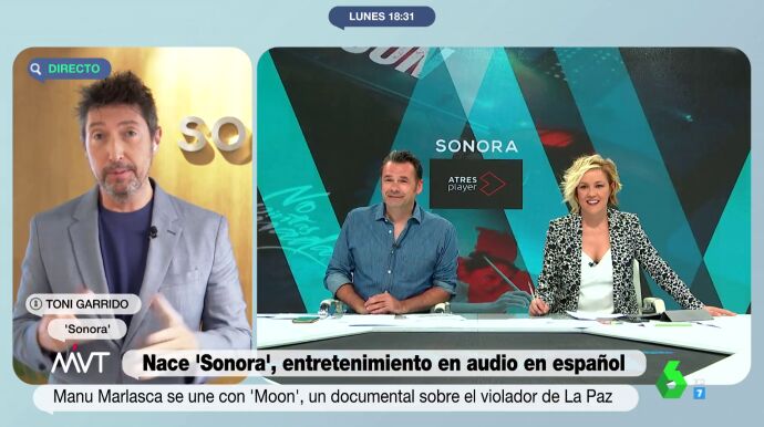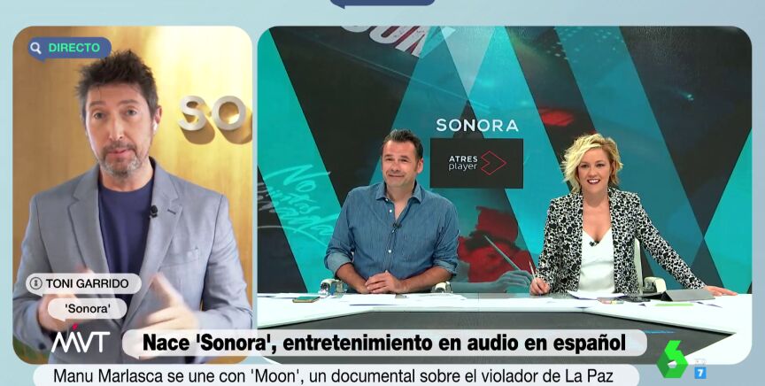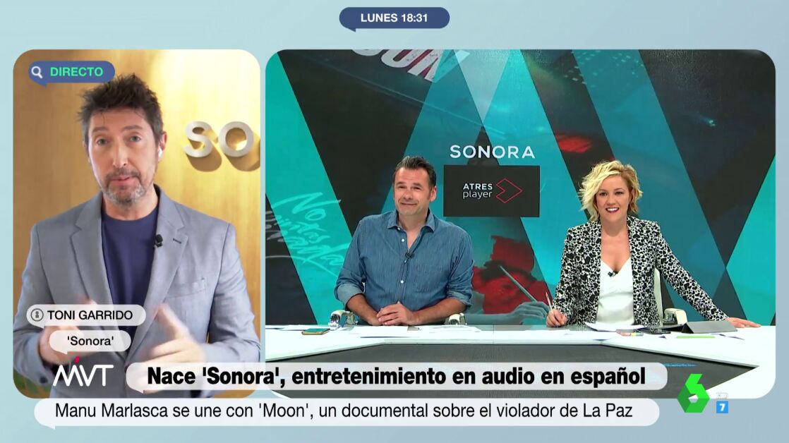 Toni Garrido ha presentado en Más Vale Tarde la nueva plataforma 'Sonora', el primer servicio de suscripción de audio en lengua española que llega al mercado con 50 producciones, más de 350 episodios y miles de horas de entretenimiento, a las que se sumarán dos nuevos títulos exclusivos cada semana para ofrecer más de 1.000 episodios a final de 2022.