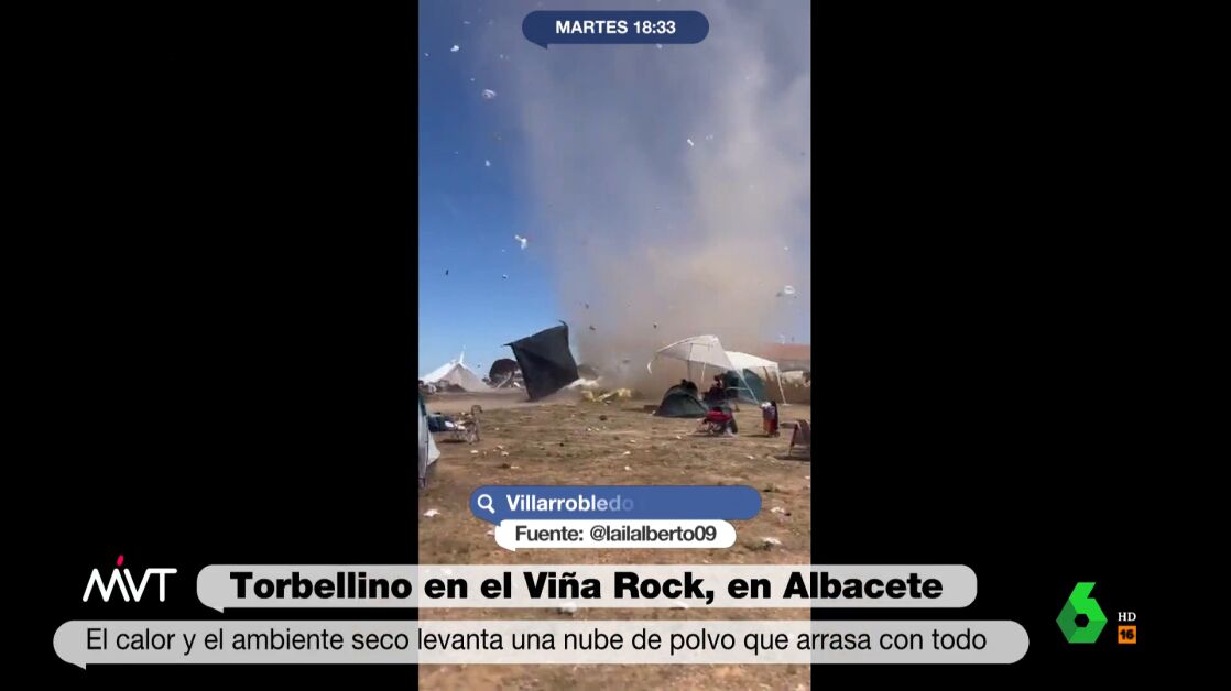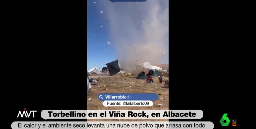 El festival Viña Rock ha vivido un momento surrealista durante su celebración durante el fin de semana en Villarrobledo (Albacete), y que ha provocado la sorpresa de los más de 200.000 espectadores durante tres días. Joanna Ivars, meteoróloga de laSexta, ha explicado este martes en Más Vale Tarde en qué consiste este torbellino.