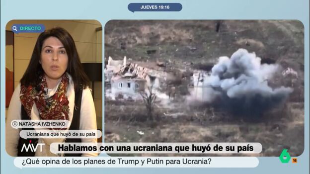 Natasha Ivhenko, una ucraniana que huyó de su país cuando comenzó la guerra, ha comentado en Más Vale Tarde que, "si se trata de mandar a más gente a morir y que haya más sangre, prefiero la paz". Así lo ha comentado Ivhenko en referencia a la negociación de paz entre Trump y Putin sin contar con Ucrania.