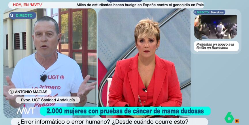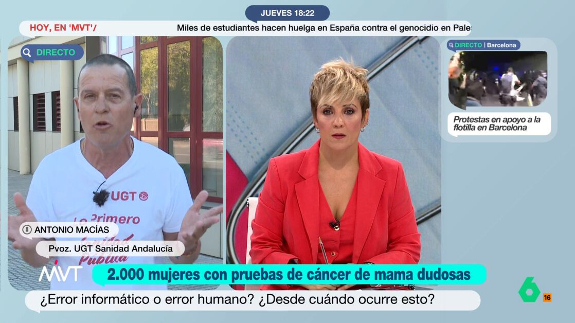 Ante la falta de explicaciones de la consejera de Salud y del presidente de la Junta, en Más Vale Tarde se ha entrevistado a Antonio Macías, portavoz de UGT Sanidad en Andalucía. Porque el servicio andaluz ha reconocido que tenía constancia de retrasos en el sistema de detención precoz de cáncer de mama desde enero de 2024.