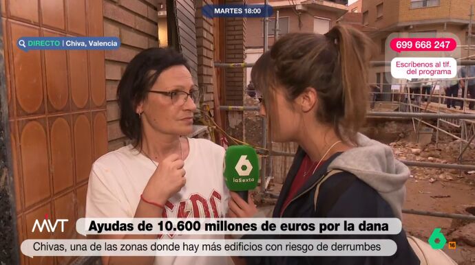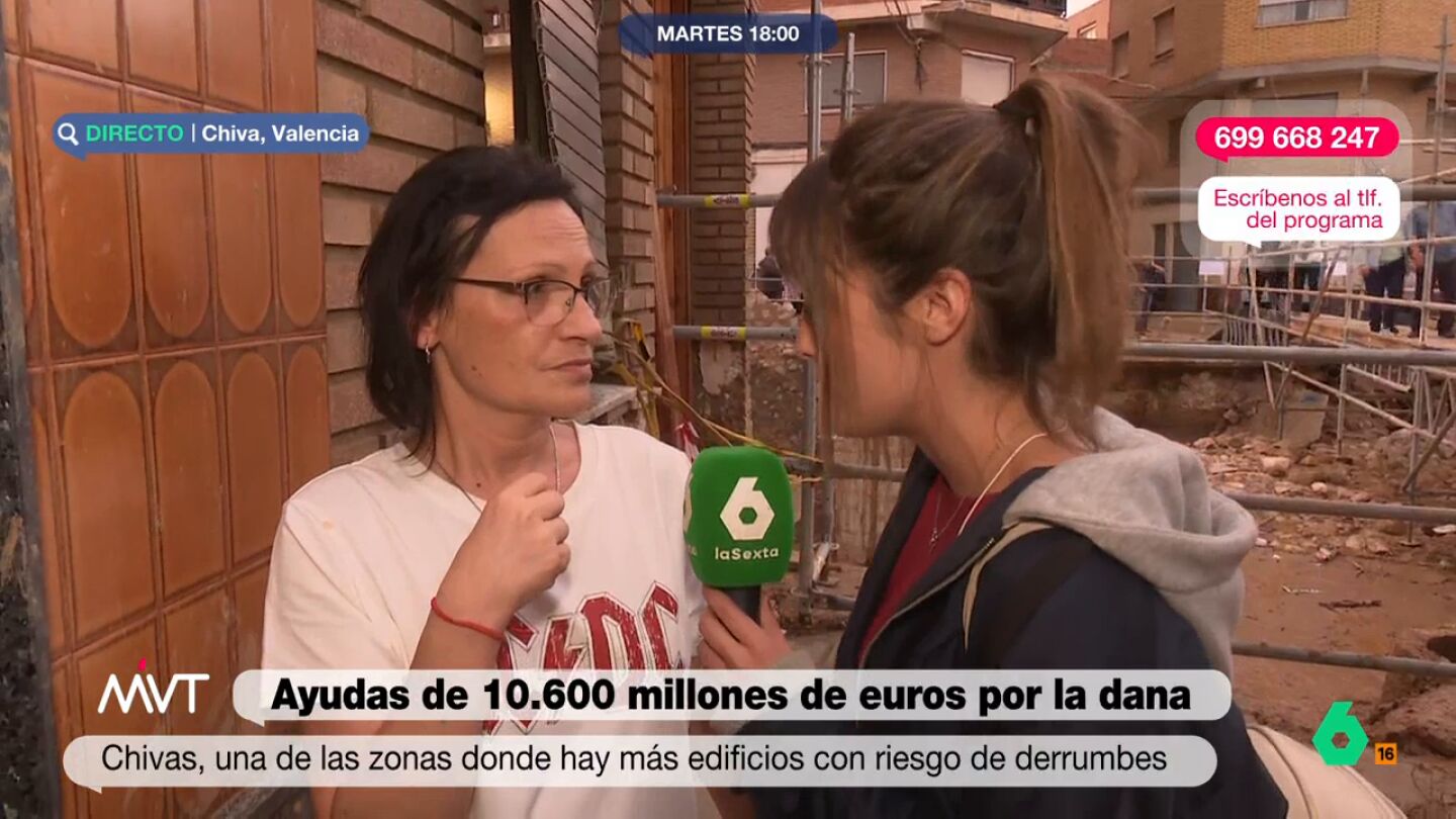 La reportera de Más Vale Tarde, Sara Rincón, da a conocer la historia de Inma, una vecina de Chiva cuya casa estaba cerca del barranco, se desbordó durante la DANA.