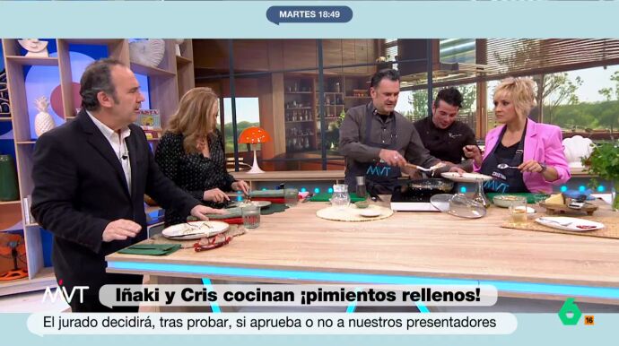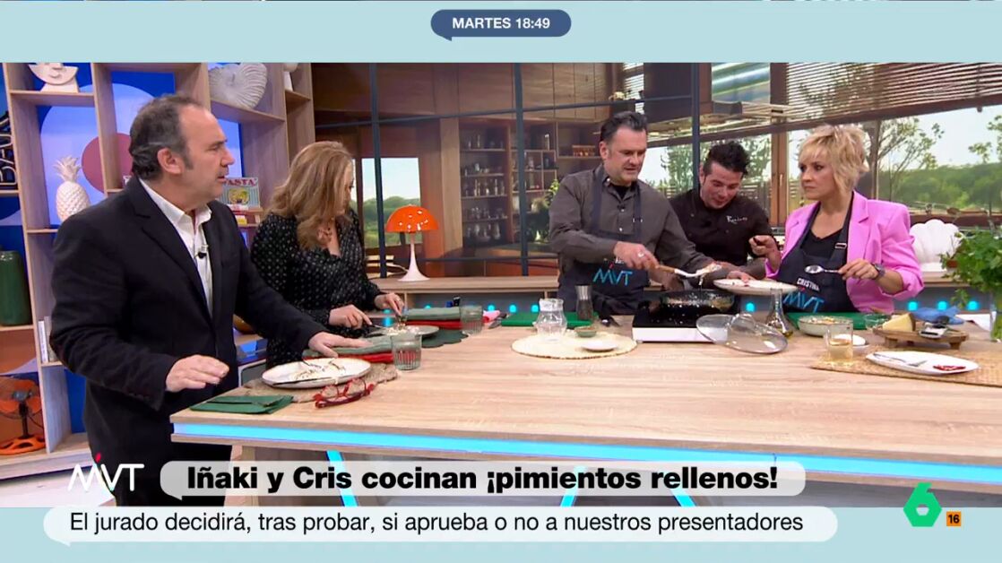 Los encargados en esta ocasión de 'aprobar' la receta de los presentadores de Más Vale Tarde son Juande Colmenero y Elisa Beni, que anticipa en el vídeo sobre estas líneas que "es raro que un pimiento relleno esté malo".