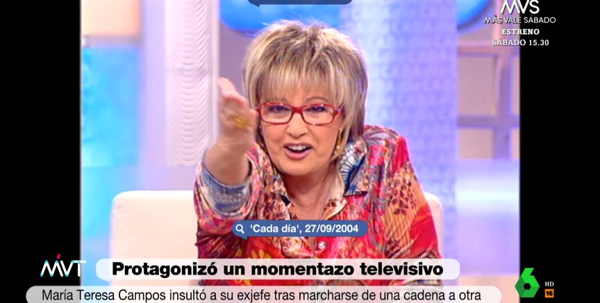 La presentadora, fallecida este martes a los 82 años, defendía entonces que Antena 3 había ganado lentamente cuatro o cinco puntos". "Y tú has perdido seis, ¡gilipollas!", concluyó María Teresa Campos.