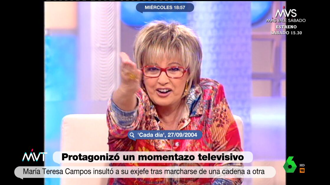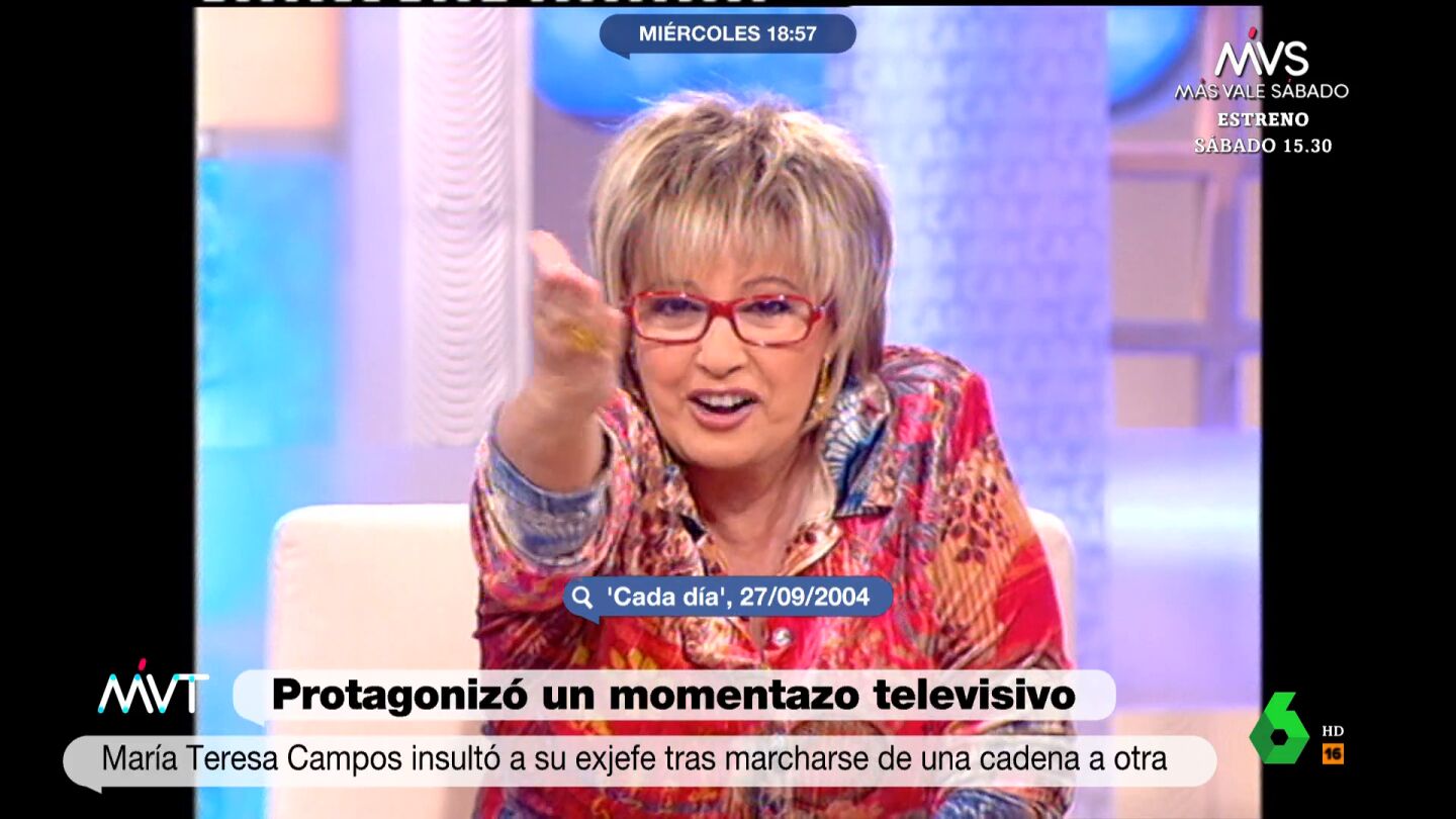 "¡Cállate ya, hombre! ¡Cállate ya y vete para tu tierra, que no te quieren ni allí! Vete y cállate ya, que has perdido siete puntos, ¡siete has perdido! Y todavía no estamos más que empezando, estamos muy modestamente levantando cabeza poco a poco. Pero tú has perdido siete puntos", dijo María Teresa Campos un 27 de septiembre de 2004 en el programa 'Cada día'.