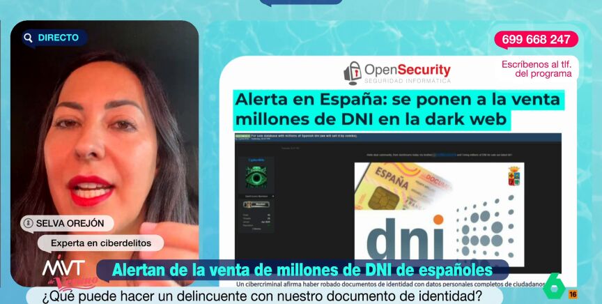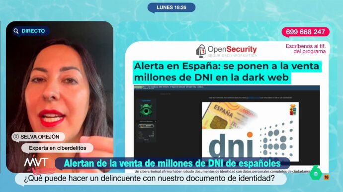 Más Vale Tarde conecta con Selva Orejón, experta en ciberdelitos, para saber qué puede hacer un ciberdelincuente si tiene una copia de nuestro documento de identidad. Orejón expone que existe un "gran abanico de posibilidades" ya que el límite depende "de en manos de quién esta cayendo".