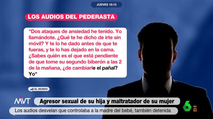 El hombre acusa a su mujer absolutamente de todo lo que sucede. "Dos ataques de ansiedad he tenido. Yo llamándote. ¿Qué te he dicho de irte sin móvil? Y te lo he dado antes de que te fueras, y te lo has dejado en la cama. ¿Sabes quién es el que está pendiente de que se tome su segundo biberón a las 2 de la mañana, de cambiarle el pañal? Yo", se escucha en la grabación.