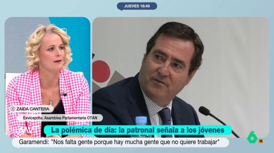 Zaida Cantera, sobre las palabras de Garamendi y las pocas ganas de trabajar de los jóvenes: "No le veo a él muy deslomado con lo que gana"