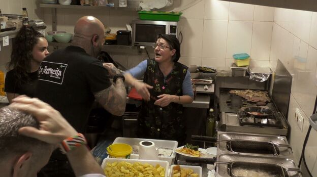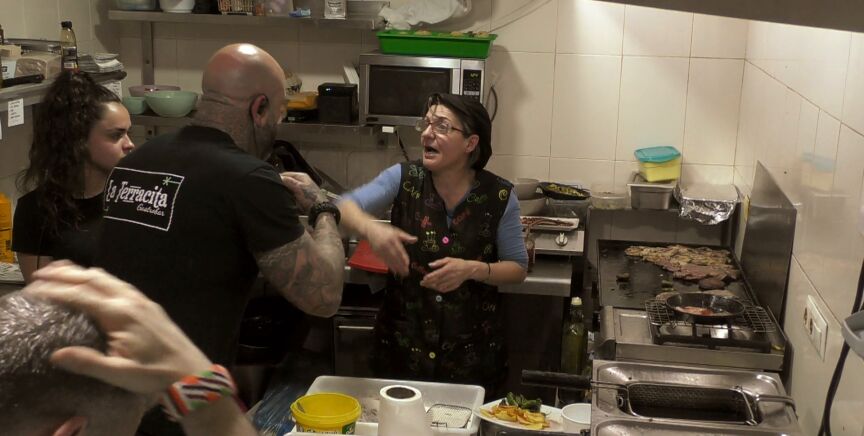 El segundo servicio de 'La Terracita' en 'Pesadilla en la cocina' es un caos. Los compañeros se gritan, la comunicación falla y los comensales se desesperan. Todo estalla cuando un cliente le dice a Jorge que un filete está crudo y entra a la cocina.