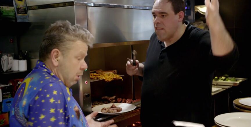 En el comedor, los comensales se quejan de la ínfima cantidad de carne que viene en su plato. Chema acude para hablar con las clientas y sus formas no son las más adecuadas, a juzgar por los comentarios posteriores de las señoras ante las cámaras de Pesadilla en la cocina. "¡Es la primera vez que se me pone la gente así, coño, y tiene que ser contigo aquí, cojones!", grita el dueño del restaurante a Chicote mientras da un puñetazo en la mesa.