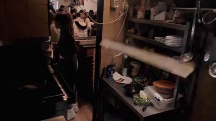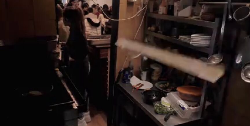 "¡Ahí va!", exclama el chef mientras pega un respingo. Se acaba de caer una lámpara del techo y, por mucho que ya sospechara que iba a ocurrir algo así, nadie le quita el susto que se pega. "Los enganches ya no valen", explica Vanesa, la ayudante de cocina. "Pero se ha soltado un cable, te puede pegar esto un chispazo", insiste Alberto, mientras todos los demás aparentan estar tranquilos.