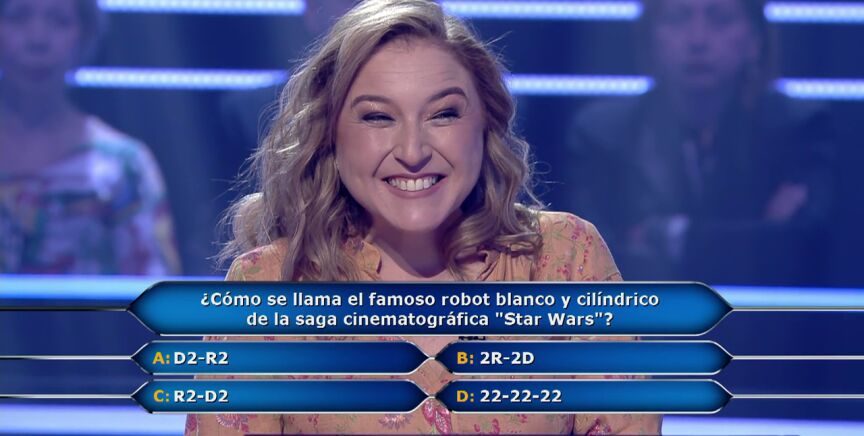 La concursante de ¿Quién quiere ser millonario? demuestra su gracia a la hora de responder esta pregunta. Clara Martínez recupera un antiguo chiste para decir el nombre del robot cilíndrico de la mítica saga cinematográfica de George Lucas.