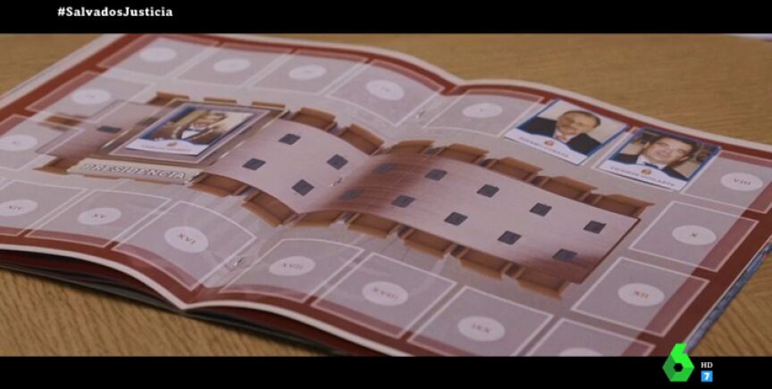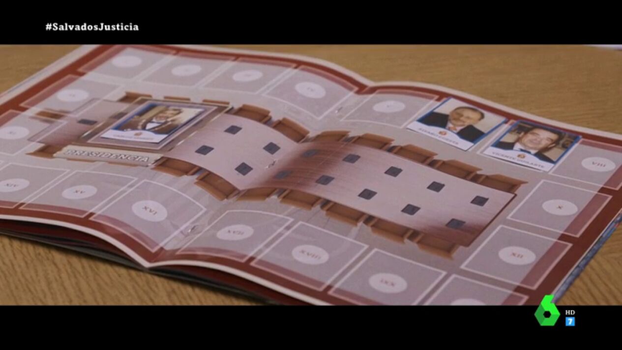 "¿Quién decide los votos en el Consejo General del Poder Judicial, los vocales o los partidos directamente?", pregunta Gonzo al ministro de Justicia tras mostrarle este álbum que refleja cómo "los partidos rellenan según sus intereses".