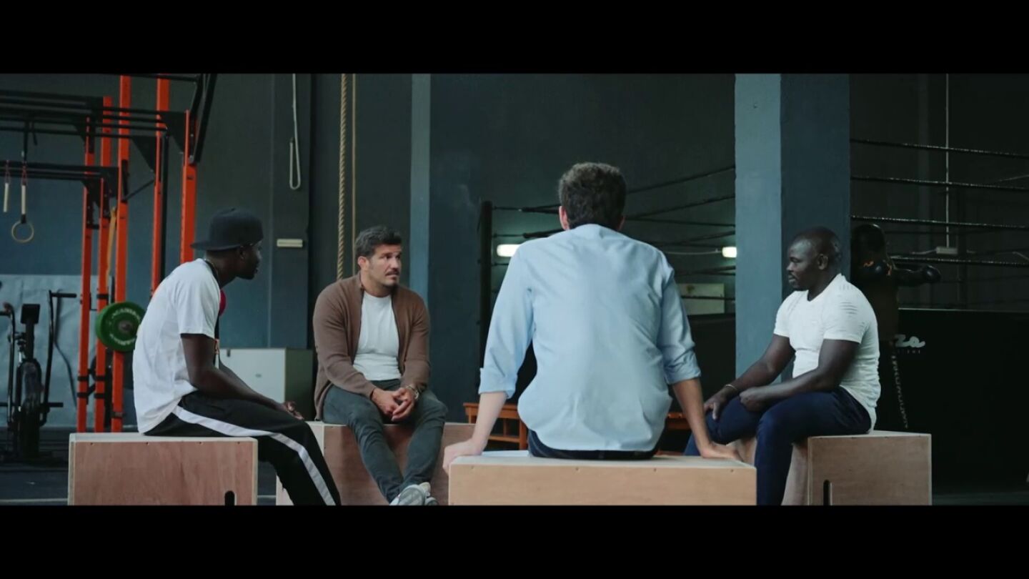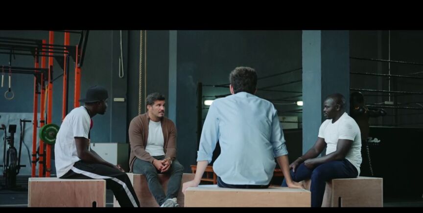Gonzo charla con dos migrantes que llegaron a Canarias hace más de ocho años: Tito, un luchador de lucha canaria, y Madala, un boxeador que representará a Mali en los Juegos Olímpicos de Tokio 2020.