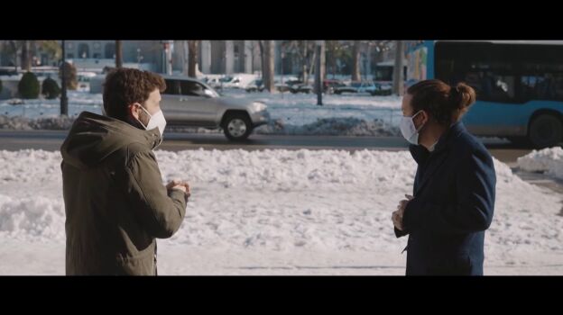 Gonzo comienza su entrevista con Pablo Iglesias en plena calle de Madrid, donde continúan restos de la histórica nevada de la borrasca Filomena que ha colapsado la capital. "Hay que reconocer que un poco de mala suerte sí han tenido. Llegan al Gobierno y en un año han tenido que lidiar con la peor pandemia de 100 años. Para celebrar el aniversario, la mayor nevada que ha caído en el centro del país en 114 años", repasa el presentador, que señala a Iglesias que "hay mucha gente que dice que para ellos es peor, porque han tenido que verle a de vicepresidente".
