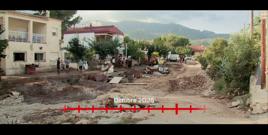 La reconstrucción tras la DANA de 2018 se llevó todo el presupuesto anual del municipio de Alcanar: "8 millones de euros... y después vino otra y otra y otra", lamenta el edil. Las ayudas al desastre de 2018, denuncia, fueron pocas y tardías. Apenas cubrían el 10 % del daño económico y llegaron dos años y medio después.