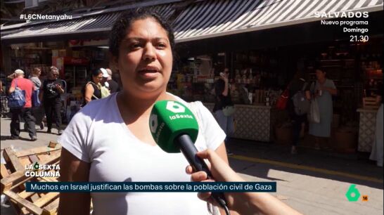 El periodista explica que, hace pocos días, el propio partido de Netanyahu, el Likud, "hablaba de que un recién nacido, por el hecho de ser palestino, ya es terrorista". Una ciudadana de Israel asegura a laSexta Columna que está a favor de los bombardeos de Gaza porque "la misma gente que vive en Gaza escogieron ser liderados por el grupo Hamás".