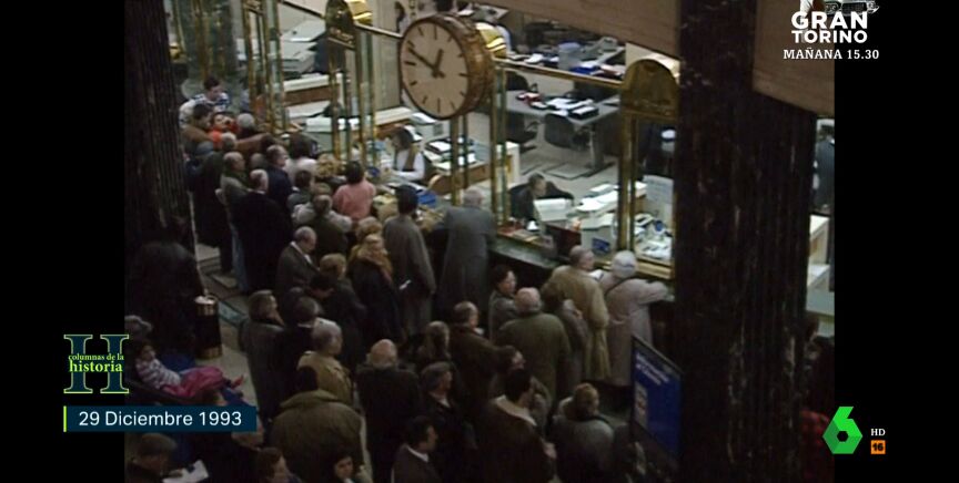 Como muestra laSexta Columna en el vídeo sobre estas líneas, antes de salir el sol ya había colas de gente inquieta y aunque en las sucursales de Banesto insistían en tranquilizarles, ya había quien prefería retirar alguna peseta del banco. Los más desconfiados no se iban sin comprobar la cantidad.