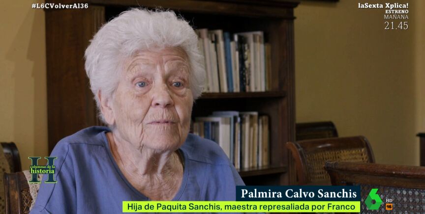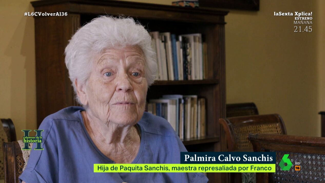 Palmira explica a laSexta Columna cómo vivió la detención de su madre, Paquita, por el único motivo de haber sido maestra en la República. También cuenta en este vídeo el tiempo que pasó con ella en prisión y los duros años que vinieron después.