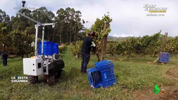 laSexta Columna se traslada hasta unos viñedos de Pontevedra que han transformado su explotación introduciendo drones, robots de tierra, datos satelitales y sensores del campo. Con estas máquinas detectan mucho antes si sus preciadas uvas pueden caer enfermas.