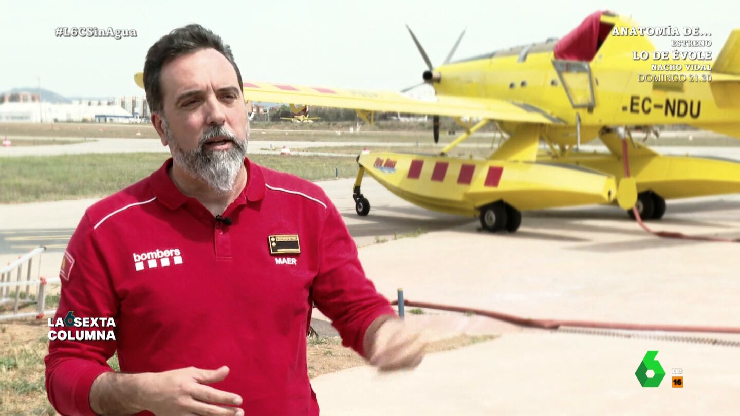 "A más sequía la posibilidad de que un incendio sea más grande es mayor ", explica en este vídeo a laSexta Columna Fracesc, que además señala que por su nivel, cinco embalses en los que cargan el agua "están fuera de servicio". "Tiene que haber una lamina de agua donde tengamos una longitud mínima de entre 400 y 600 metros de longitud . Si los pilotos ven que hay poca profundidad, tampoco se meten", comenta.