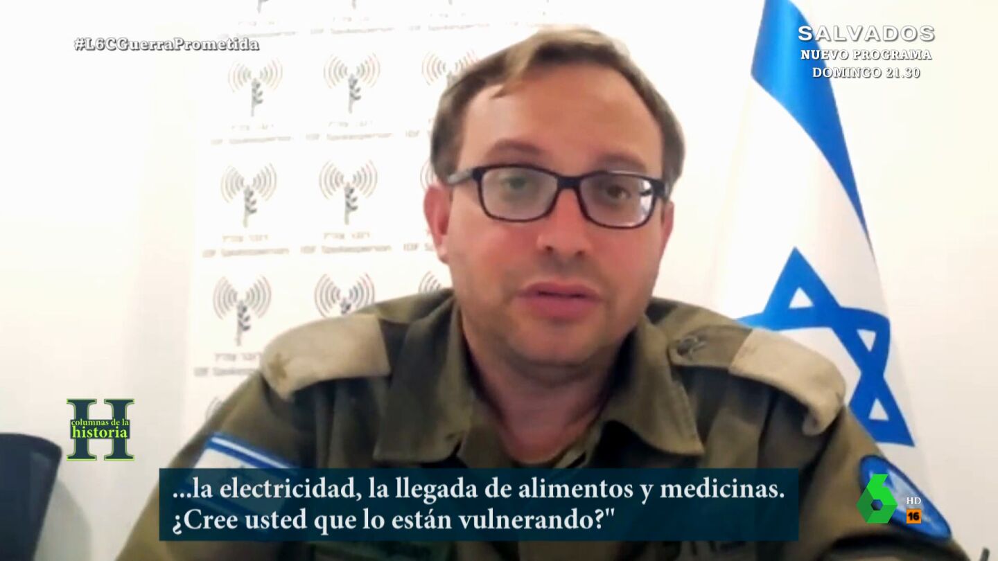 Tras declarar la guerra, el gobierno de Netanyahu convoca a más de 350.000 reservistas de su ejército. laSexta Columna ha podido hablar con uno de ellos, al que el ejército israelí ha designado como portavoz. El capitán Roni Kaplan reconoce que el ataque les pilló por sorpresa: "Era un escenario que potencialmente se podría llegar a generar, pero el asesinato de 1400 personas acribillando e incinerando era algo que realmente no esperábamos hasta tal punto", afirma. "Tomar rehenes es un crimen de lesa humanidad y Hamás es responsable por todos y cada uno de ellos frente a la comunidad internacional", explica Kaplan en el vídeo sobre estas líneas.