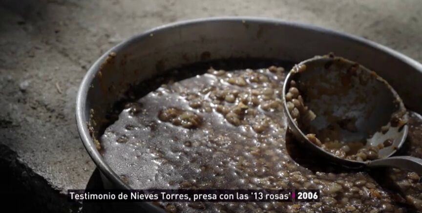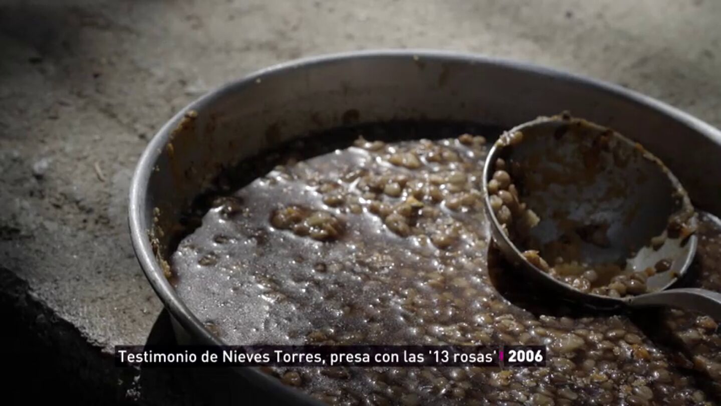 Nieves Torres estuvo presa en la cárcel de Ventas junto a las Trece Rosas. Así hablaba en 2006 del alimento que recibían en las celdas: comida sucia y platos que les lanzaban a los pies.